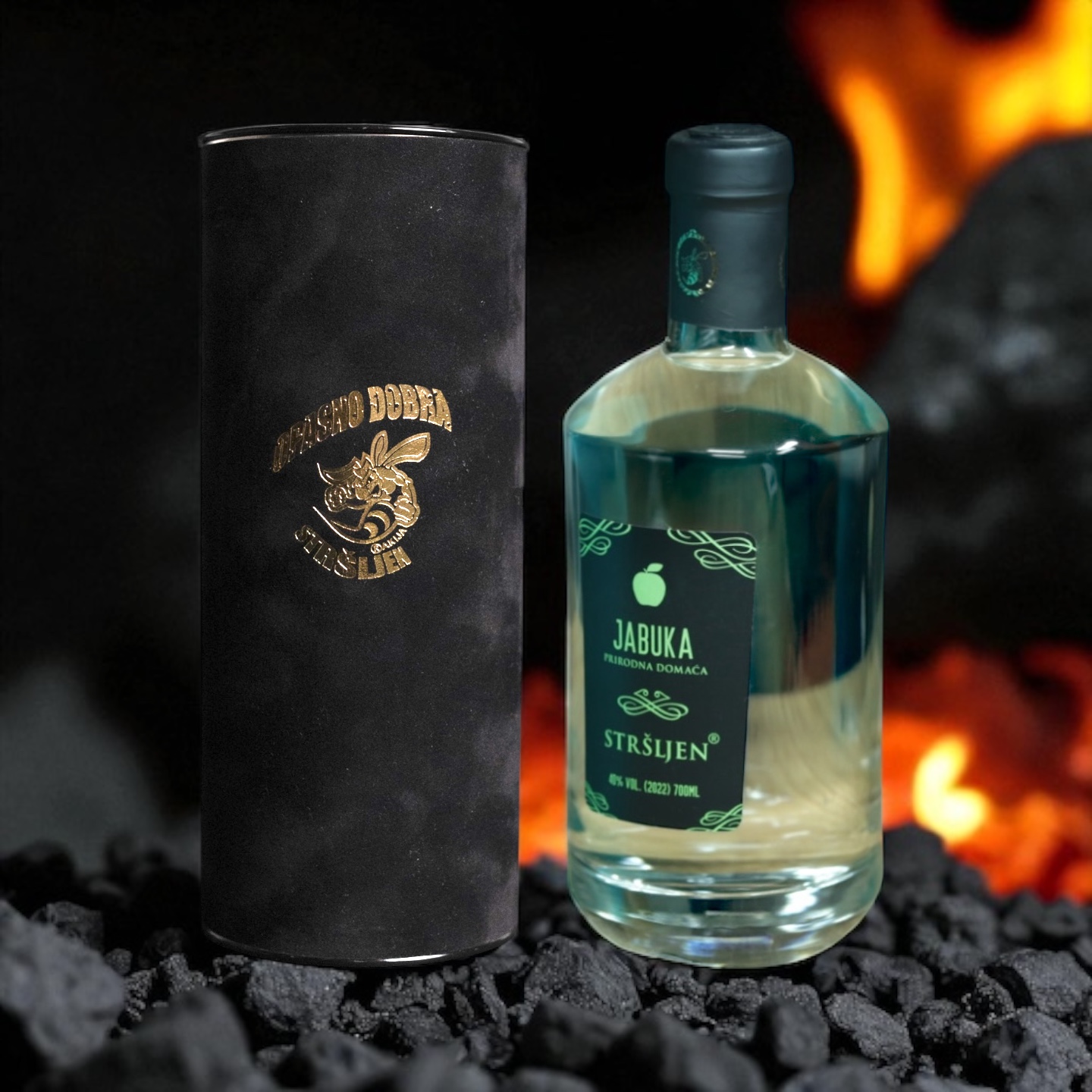 Prirodna domaća rakija naš sinonim zdravlja, raznolikosti – zbog bogatstva različitih sorti koje se mogu koristiti u njenoj proizvodnji i autentičnosti na osnovu tradicionalne recepture korištene u njenom nastajanju. Odlikuje se kristalnom jasnoćom, blagim i voćnim karakterom, sa prepoznatljivim mirisom zrelih jabuka. Rakija Stršljen od jabuke prepoznatljiva je po svom nježnom, prijatnom i izuztenom bogatom okusu, te svježini koja podsjeća na miris poslije kiše. Dobijena je dvostrukom destilacijom i pažljivo čuvana u francuskim Radoux buradima.