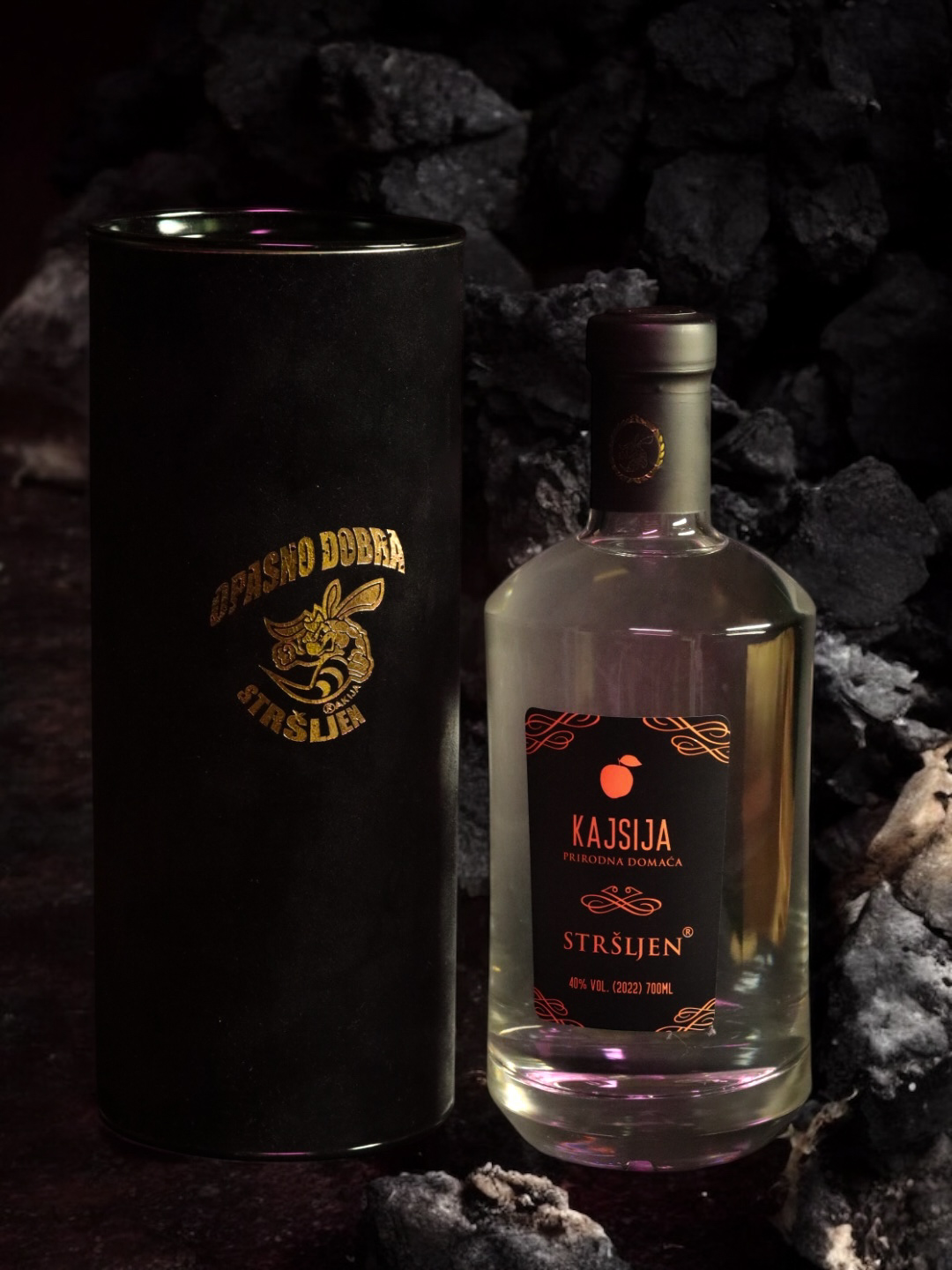 Prirodna domaća rakija koja plijeni svojim organoleptičkim sastavom, zbog kojeg nikog ne ostavlja ravnodušnim. Selekcijom prvoklasnih plodova kajsije dobili smo vrhunsku kvalitetnu rakiju čija se aroma može porediti sa prefinjenošću najkvalitetnijih svjetskih parfema, dok izgledom asocira na bistrinu i sjaj kristala, osim trenutka kada rakija ne zatalasa u čašici i ne pokaže svoje guste suze na zidovima čaše, i na kraju ne ostavi neprikosnoveni pečat zrelih kajsija prilikom svake degustacije.  Iza nas je dugogodišnje iskustvo, koje nam je pomoglo da tokom praćenja fermentacije naši majstori do detalja razrade formulu koja je odlika svih navedenih karakteristika ove ljepotice.